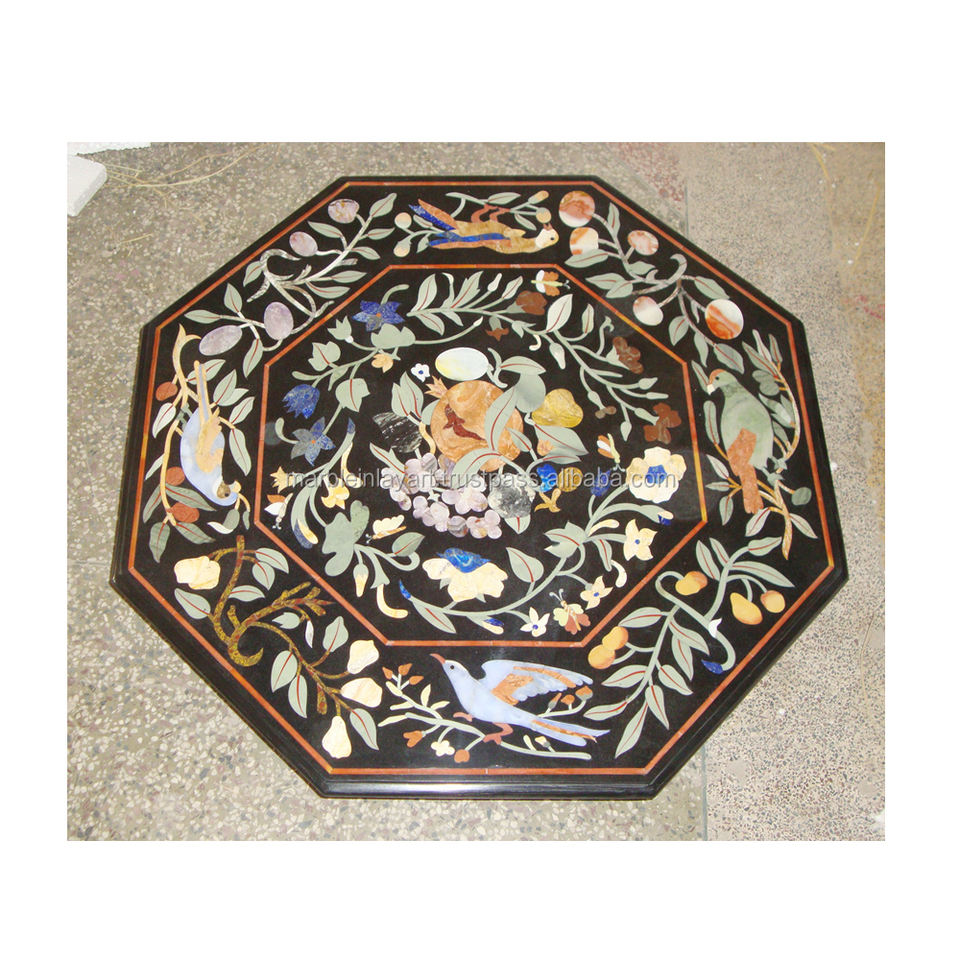 Black Octagonal Marble Inlay Table Top