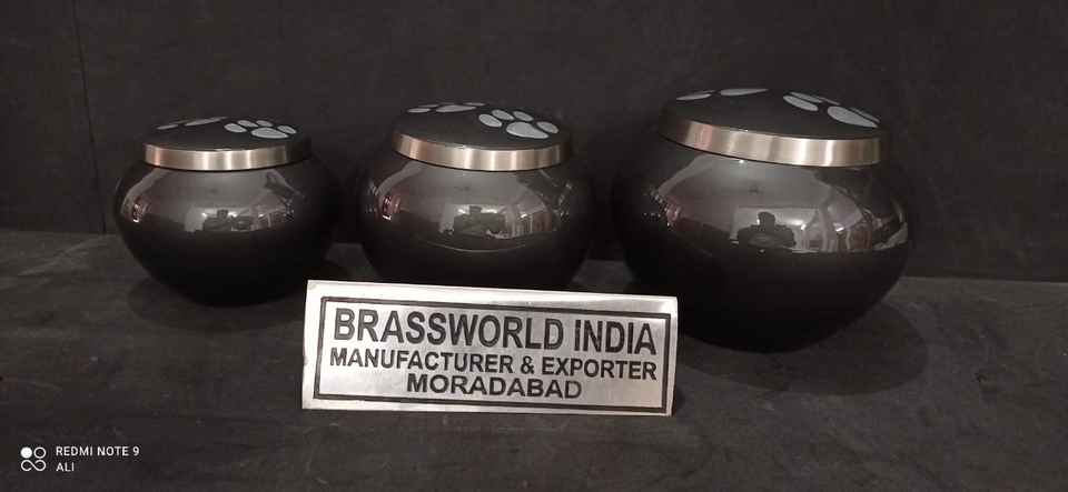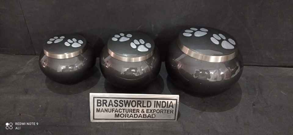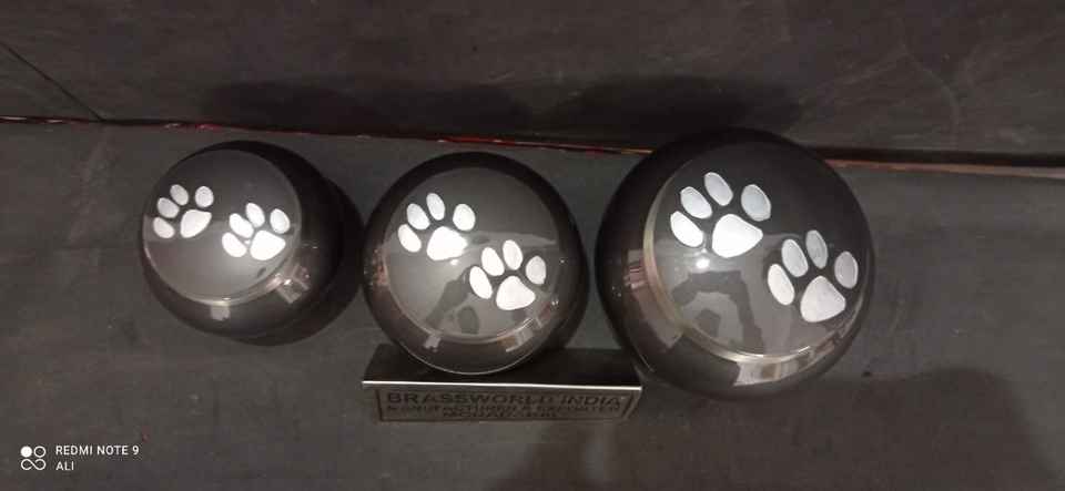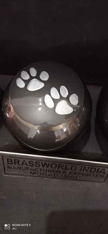 Urne funéraire pour animaux de compagnie de style américain Black Odyssey Silver PAWS par Brassworld, fournisseur de produits funéraires haut de gamme en Inde