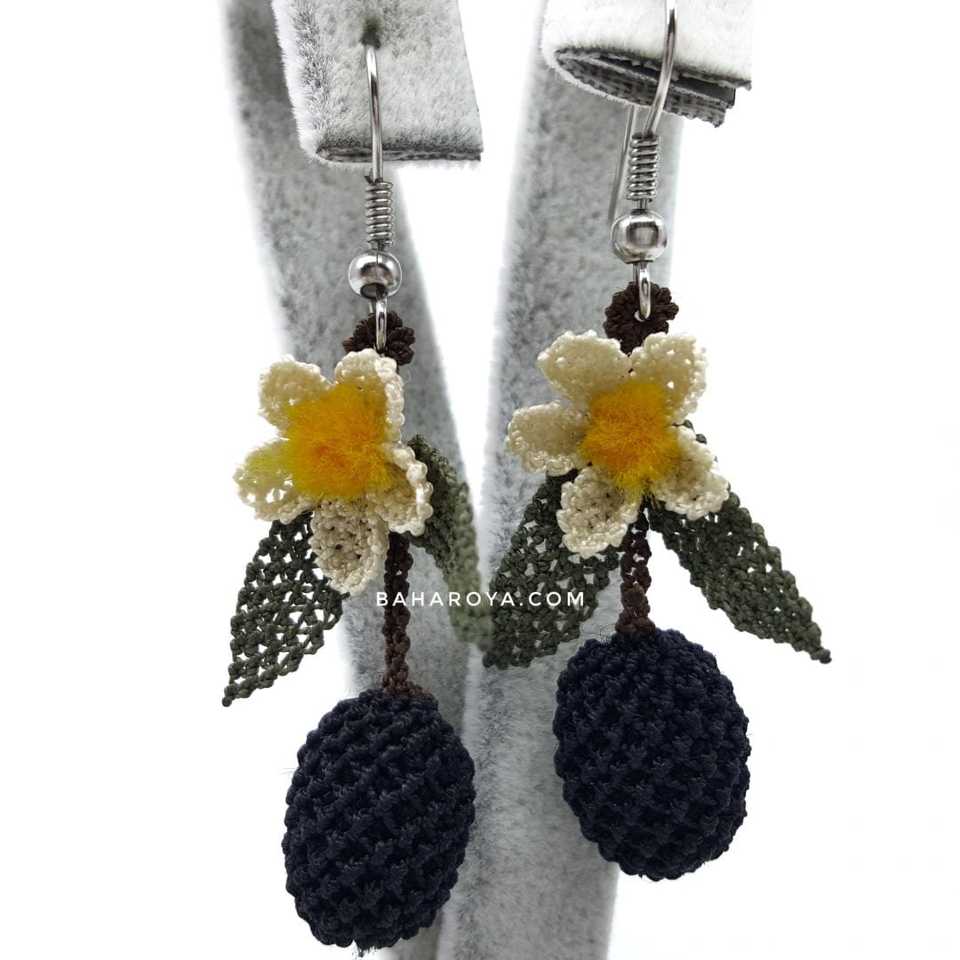 Black Olive Fashion Earrings Needle Lace Design
