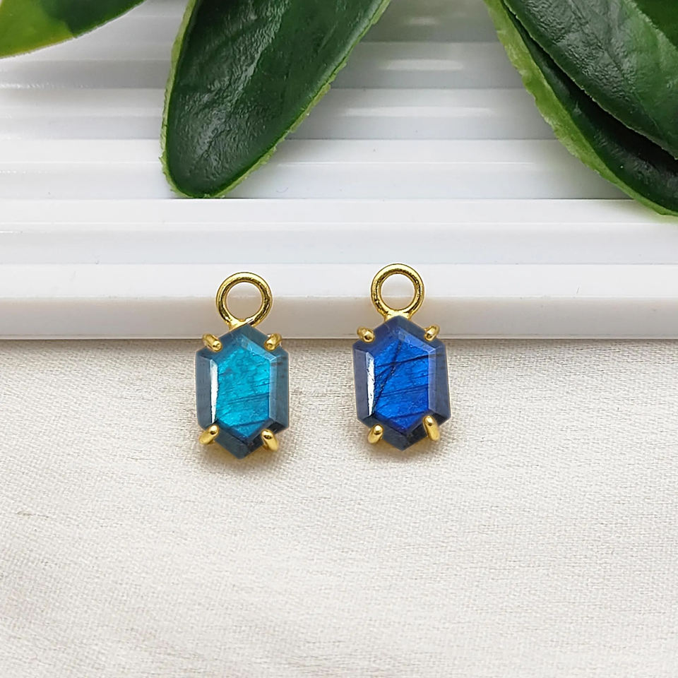 name or words:Gemstone 12x8mm Hexagon Prong Set Pendant 925 Sterling Silver Gold Plated Natural Gemstone Silver Charm Wholesale Bulk Jewelry