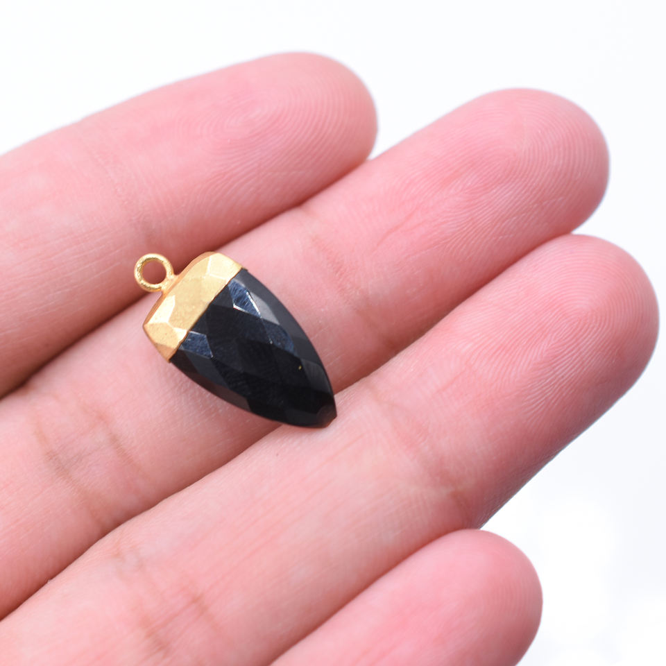 Product Name:Black Onyx Half Marquise Shape Gold Plated Pendant