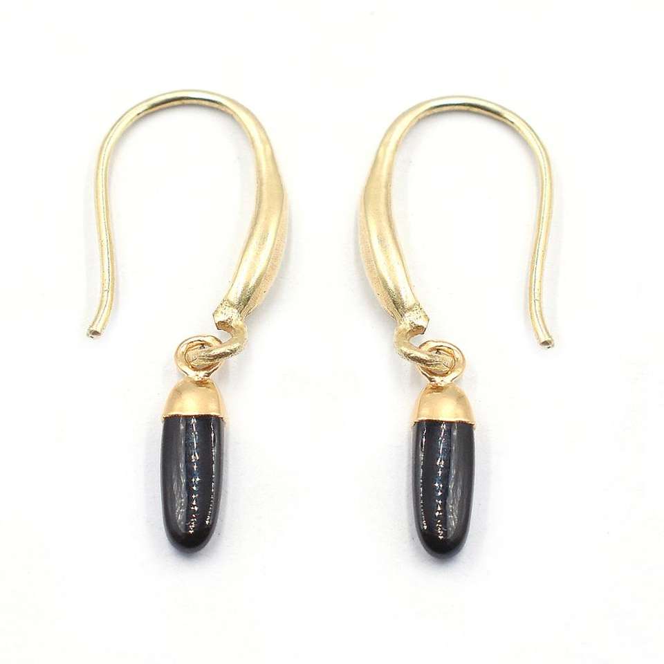 Product Name:Black Onyx Ear Wire Oval Shape Gold Electroplated Earring