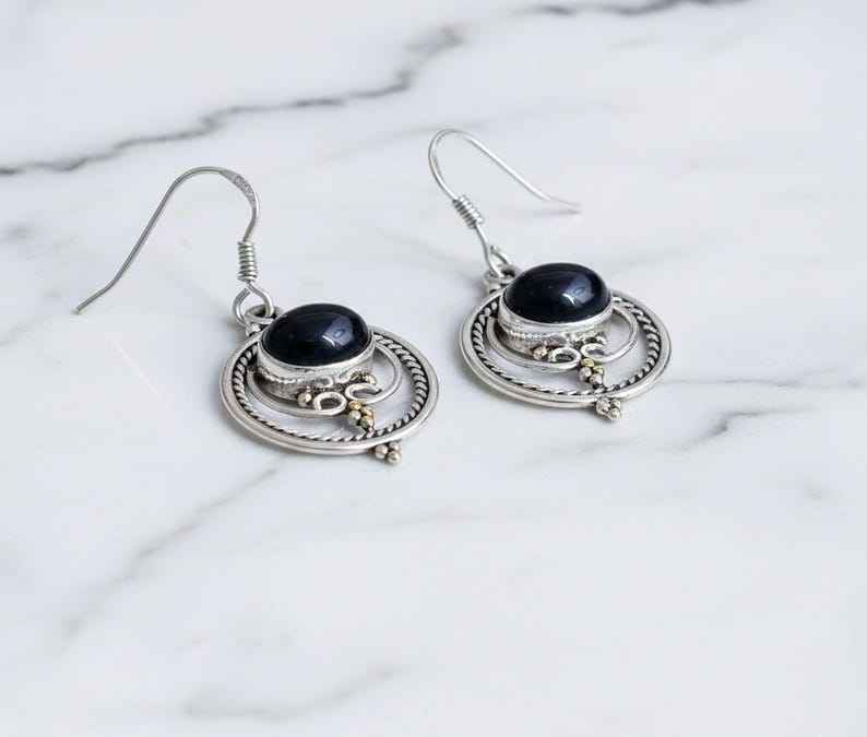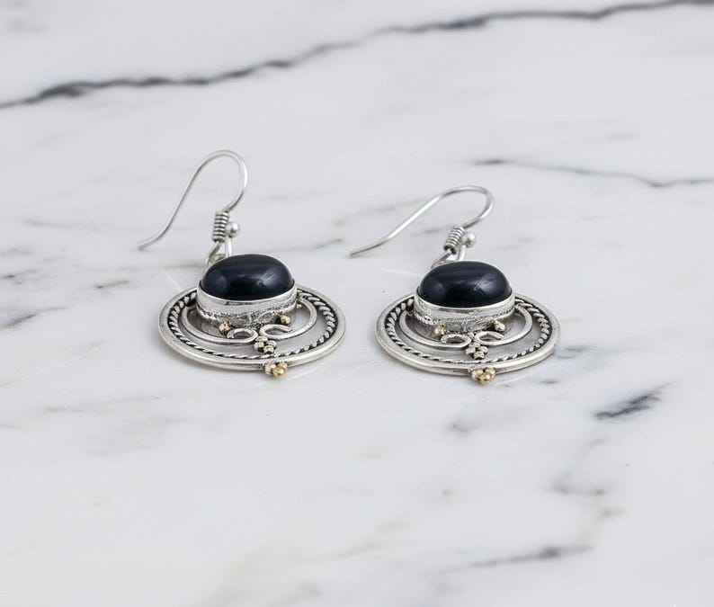 Black Onyx Stud Earrings Sterling Silver Gold Plated Cute Layered Balinese Artisan Jewelry for Anniversary and Party Occasions