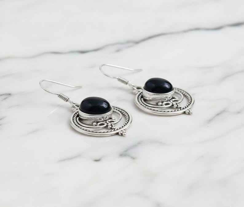 Black Onyx Stud Earrings With Sparkling Dangle Gemstone Jewelry