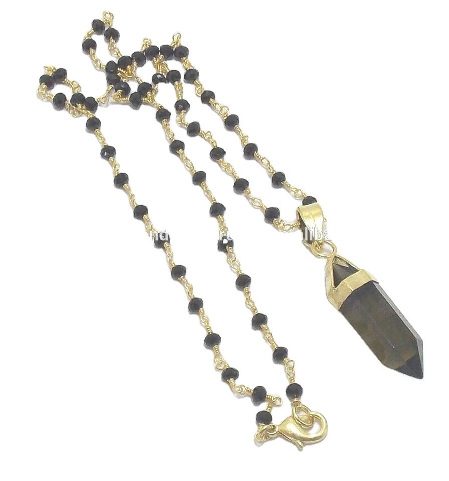 Jewelry Name:Natural Black Onyx Gemstone Beaded Rosary Chain Pencil Pendant