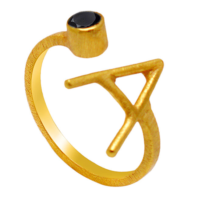 Black Onyx Gold Plated Alphabet Letter A Adjustable Jewelry 925 Sterling Silver Ring Bezel Setting Latest Ring Fashionable Ring