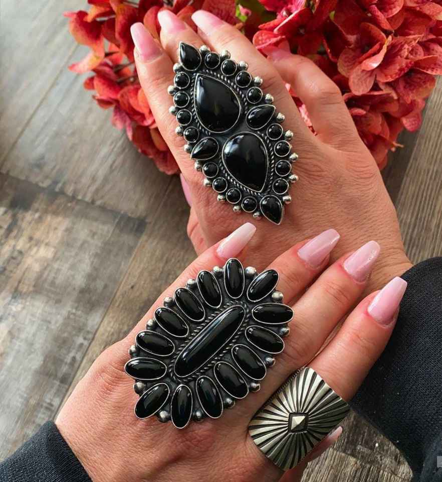 Nom du produit:Bague de déclaration en argent sterling massif 925 avec onyx noir, bijou de créateur