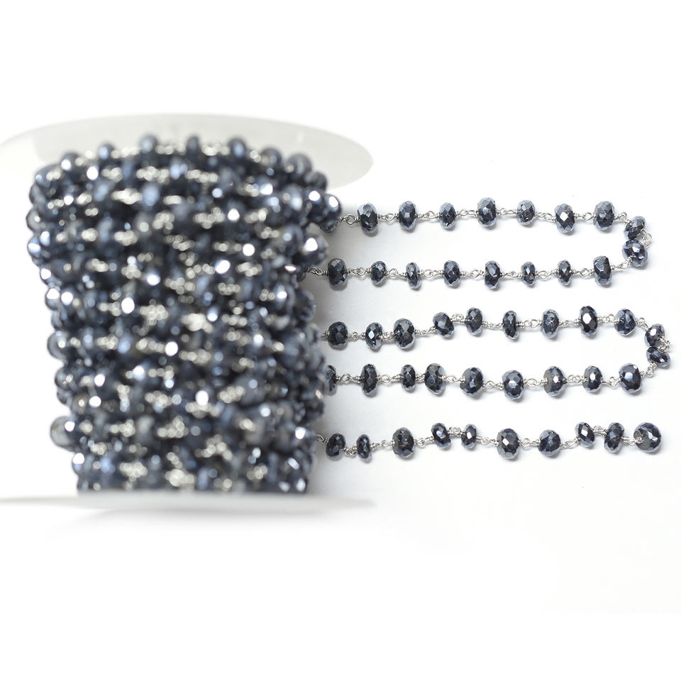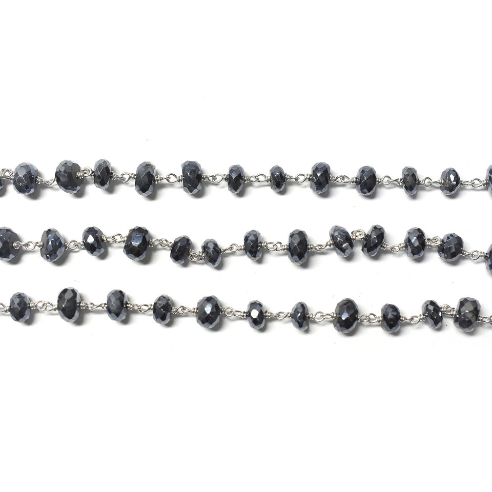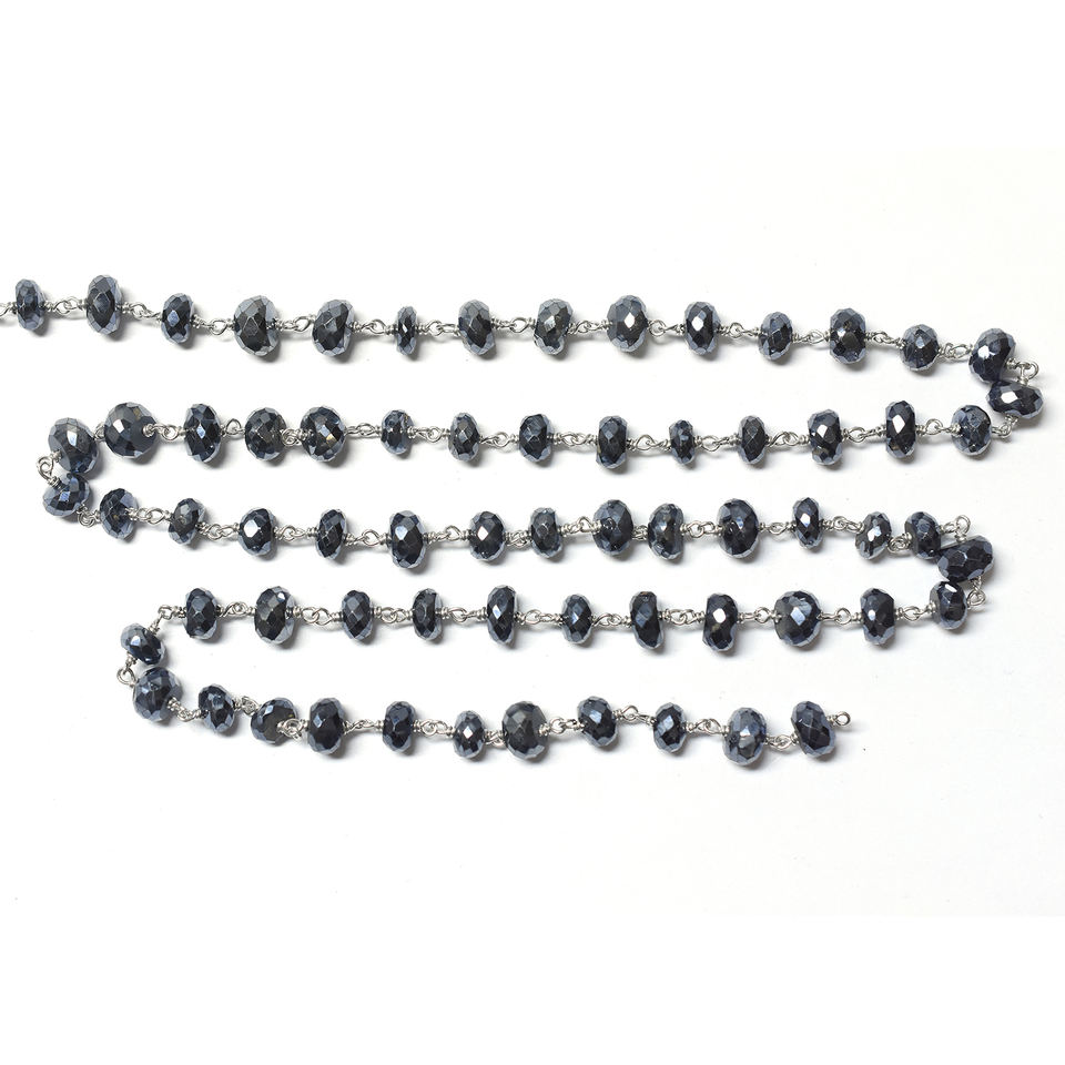 Product Name::Black Onyx Sterling Silver Silver Plated Rosary Wire Wrap Chain
