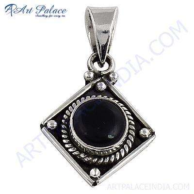 Black Onyx Silver Pendant Semi-Precious Stone Jewelry Finding