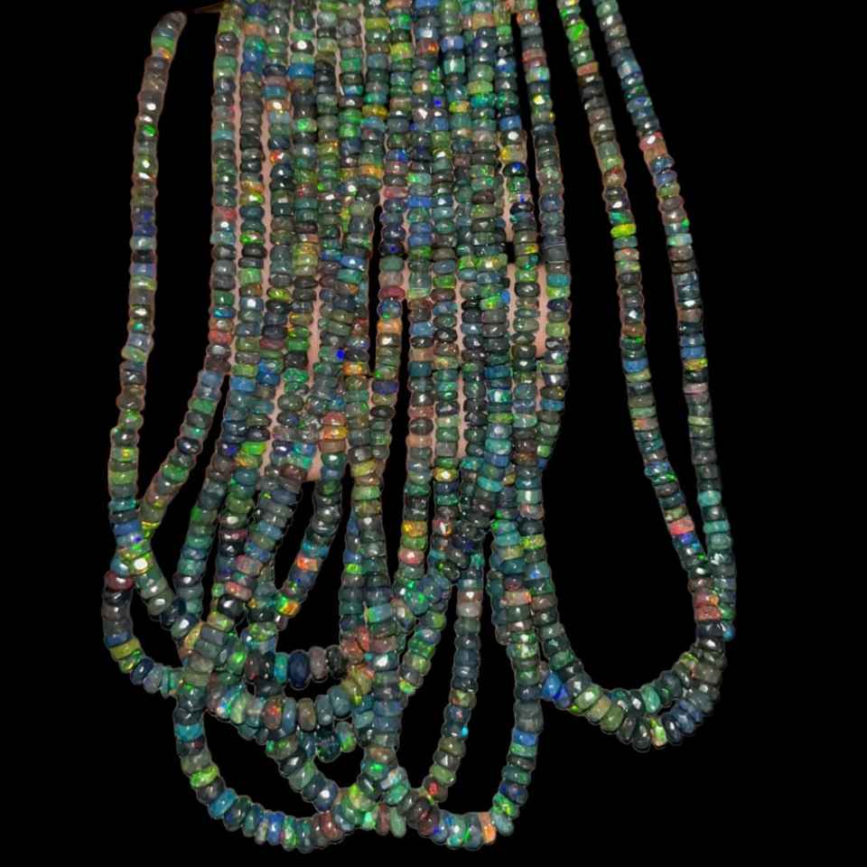 Perles Rondelle à facettes opale noire 3-5mm brin de pierres précieuses naturelles pour la fabrication de bijoux perles en vrac en gros exportation à forte demande