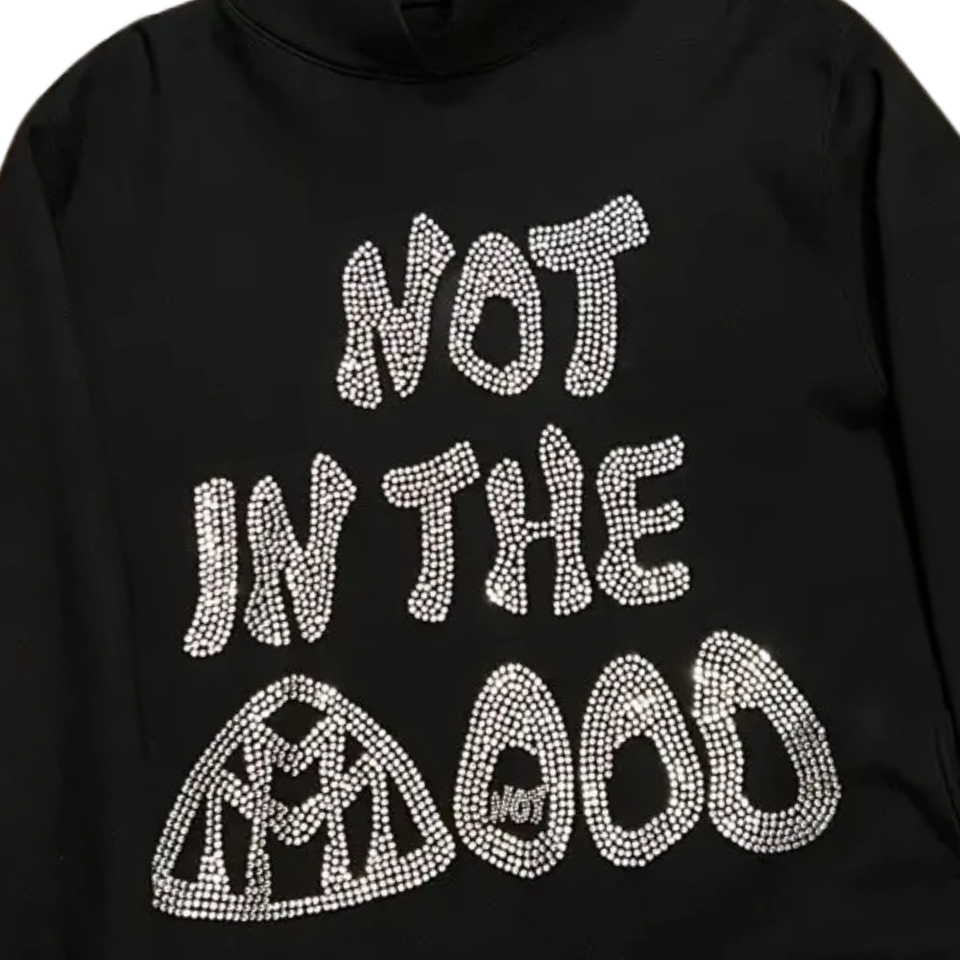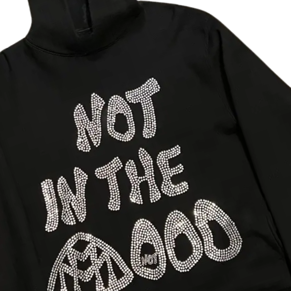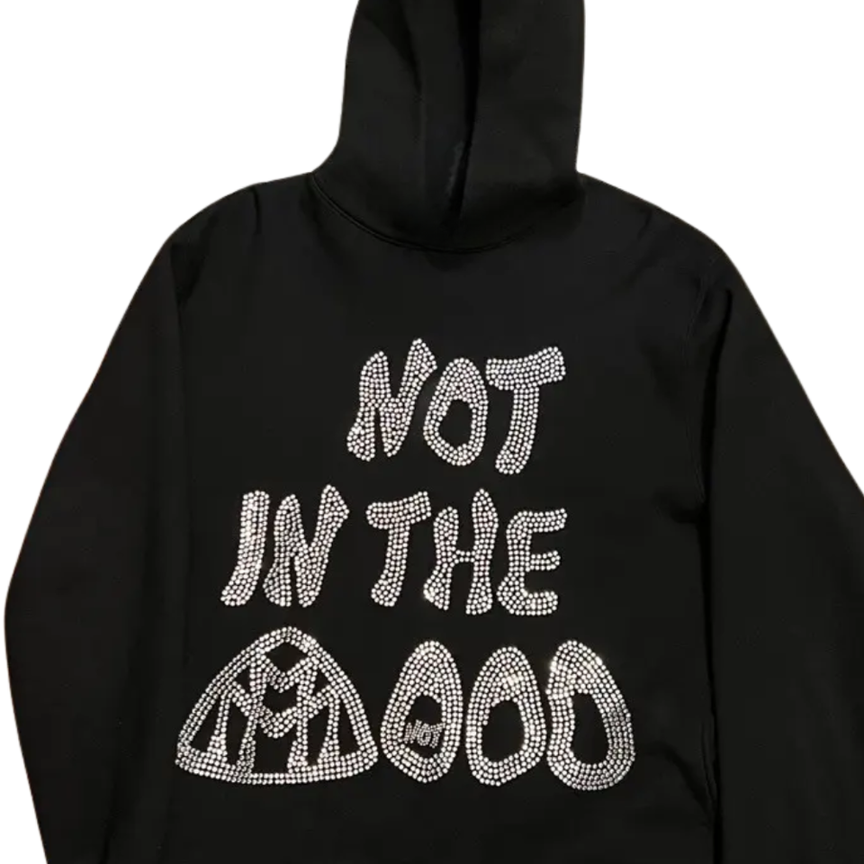 Sweat à capuche surdimensionné noir avec strass imprimé Paisley Streetwear unisexe pull en coton lourd Hip Hop hiver mode sweats à capuche vente