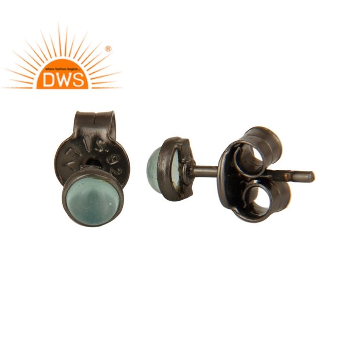 Boucles d'oreilles rondes en argent anodisé noir, bijoux minimaliste, en pierre précieuse, possibilité de vente en gros