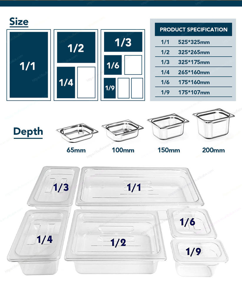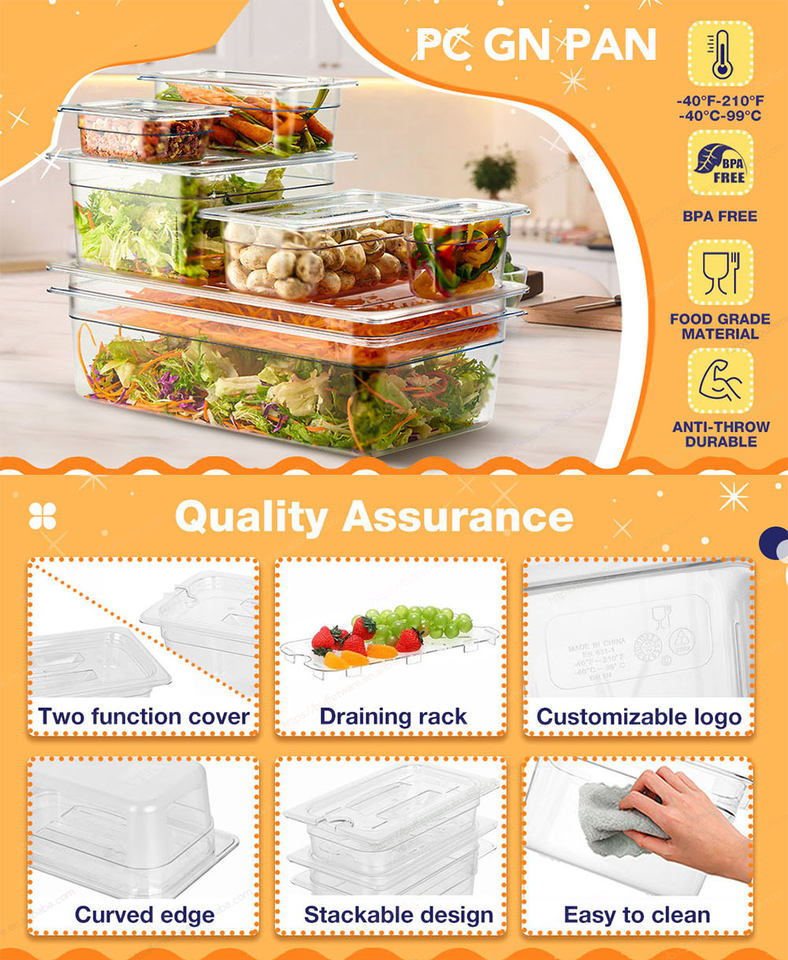 Poêle GN en plastique PC noir de taille 1/1, récipient alimentaire commercial certifié NSF, résistant à la chaleur et durable