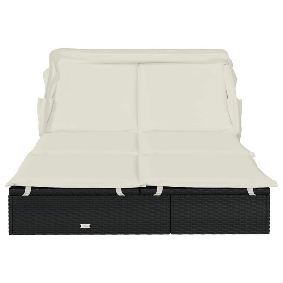 Black PE Rattan 100% Polyester Double Sunbed Powder-Coated Steel Sun Loungers