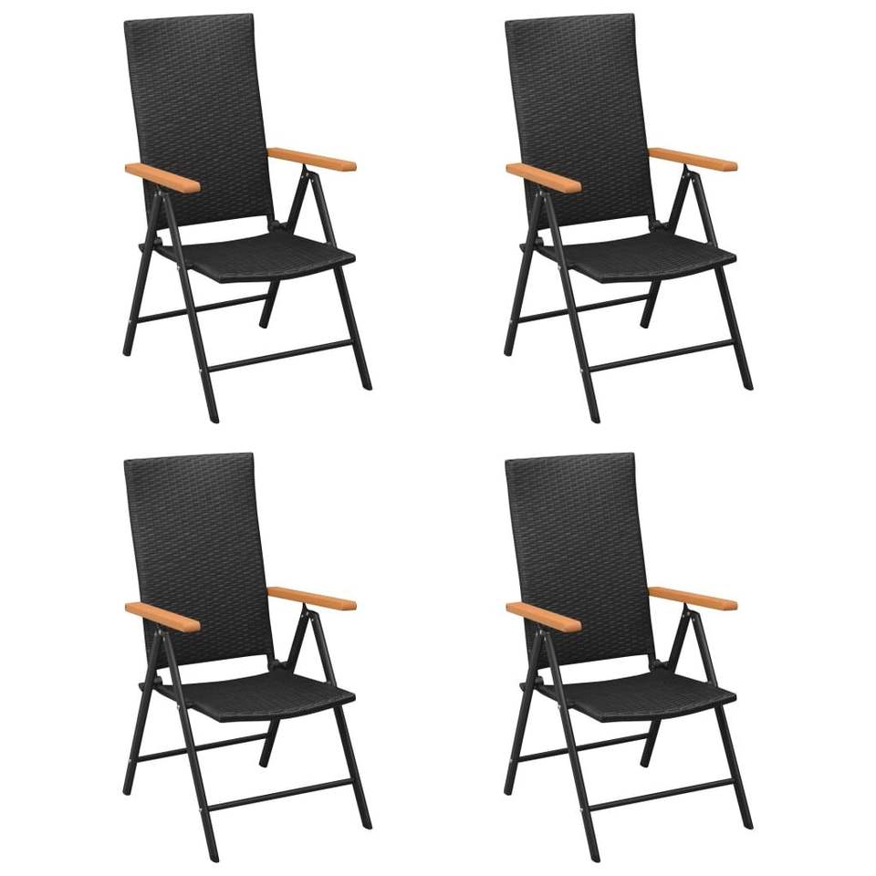 Ensemble de 4 chaises de jardin en rotin PE noir, structure en acier pliable, mobilier d'extérieur au design contemporain