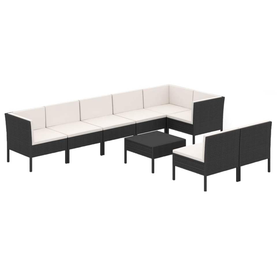 Ensemble de salon de jardin en rotin PE noir avec structure en acier thermolaqué et polyester, mobilier d'extérieur durable