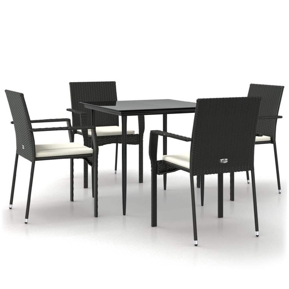 Ensemble de salle à manger modulaire en rotin PE noir, design standard pour repas en plein air