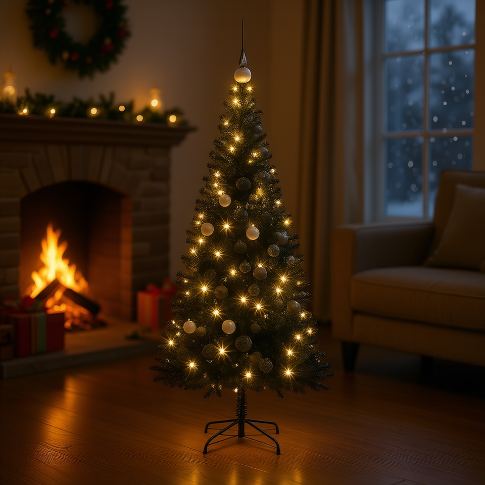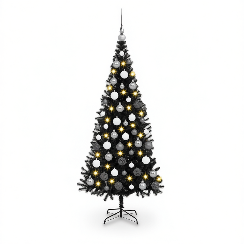 Sapin de Noël en PVC noir de 70,9 pouces avec 300 lumières LED festives pour une utilisation intérieure et extérieure