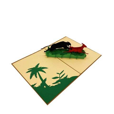 Vente en gros de cartes 3D Pop faites à la main, cerf panthère noire, découpées au laser, meilleures tendances, cadeaux artisanaux du Vietnam, impression offset sur papier