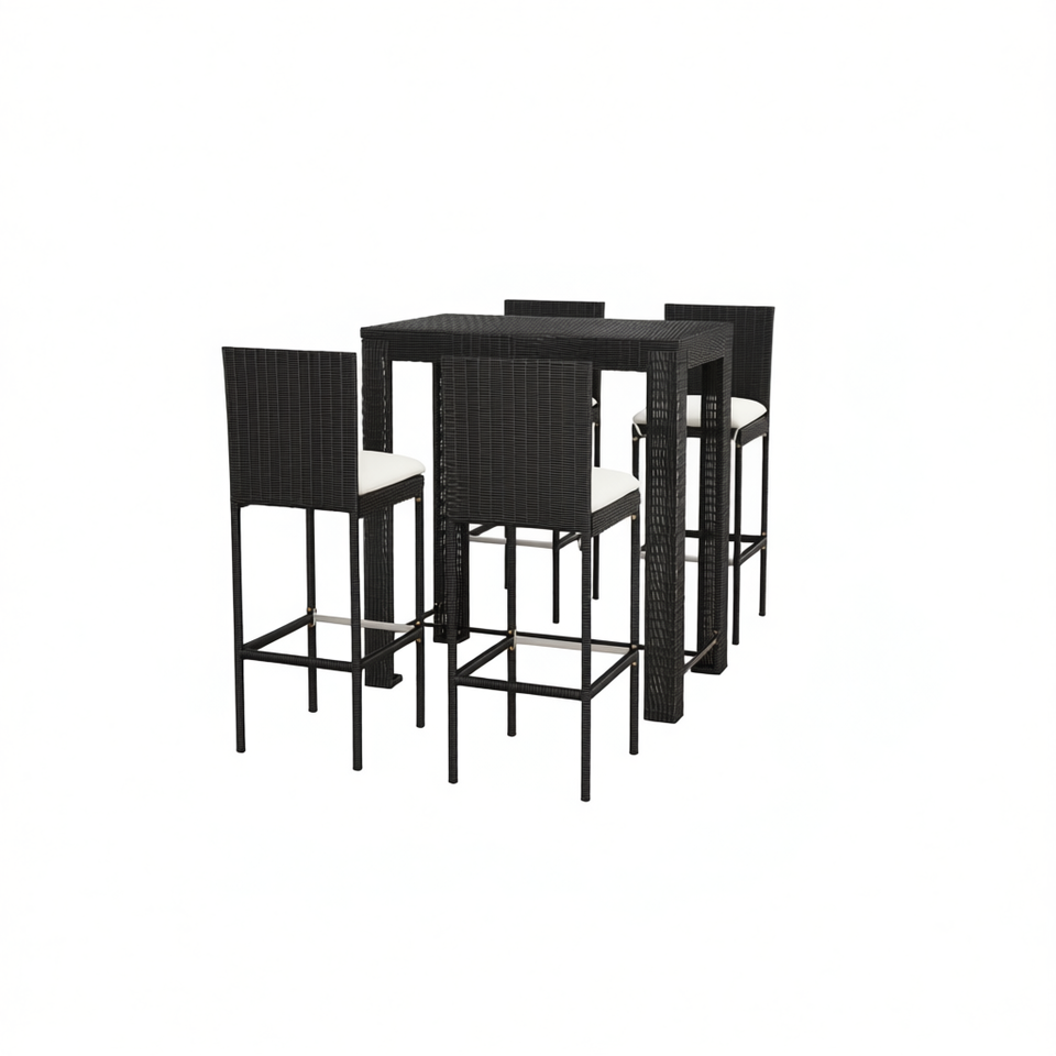 Black Pe Rattan Bar Set Powder Coated Steel Frame Garden Outdoor Bar Furniture Elegant Modern Rectangle Shape Slat Back Chair