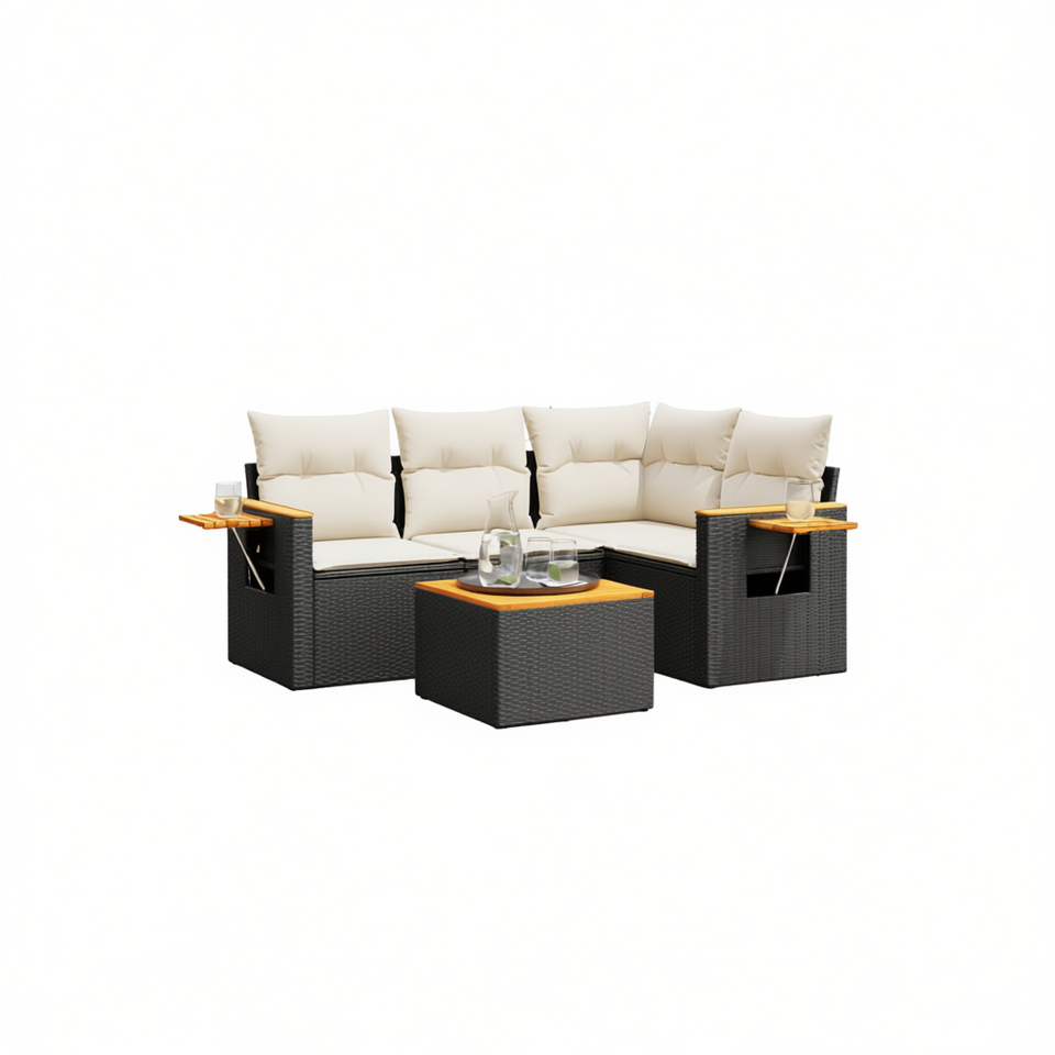 Ensemble de canapés de jardin en rotin noir avec pieds réglables, mobilier d'extérieur au design contemporain, coussins en mousse haute densité