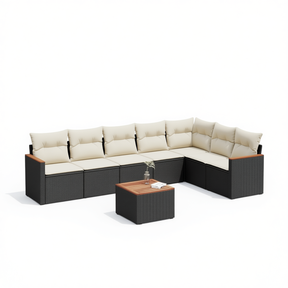 Ensemble de canapés modulaires de jardin en rotin noir, 8 places, mobilier d'extérieur, design contemporain, résistant aux intempéries