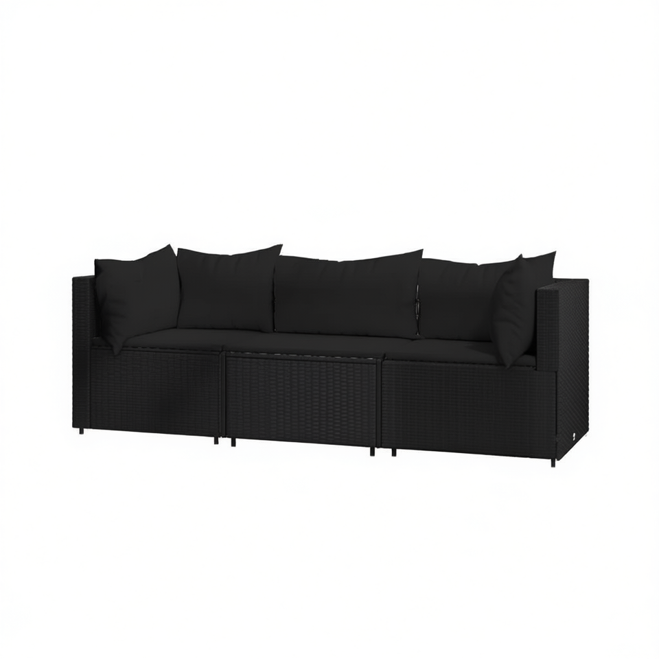 Ensemble de canapés d'extérieur en rotin noir avec structure en acier thermolaqué pour patio et jardin, design contemporain, résistant aux intempéries, 4 places