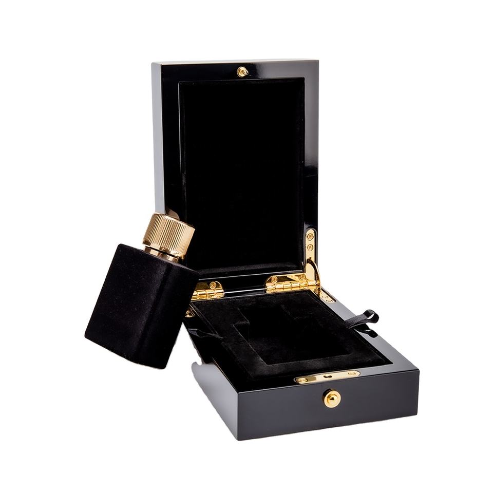Boîte d'emballage de parfum noir Boîte cadeau dure de parfum en bois haut de gamme avec laque de piano Eva Fini de luxe pour cosmétique 100ml 50ml