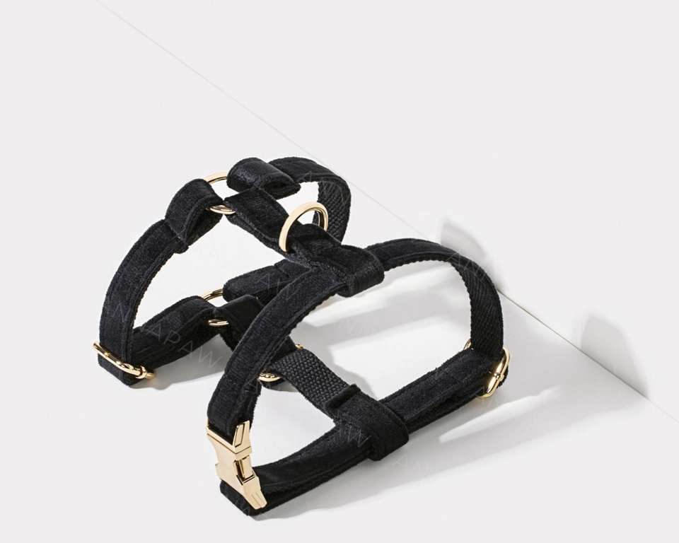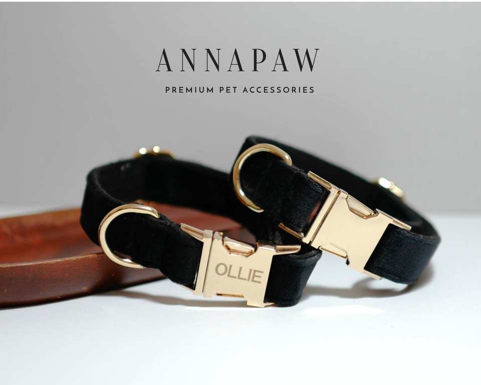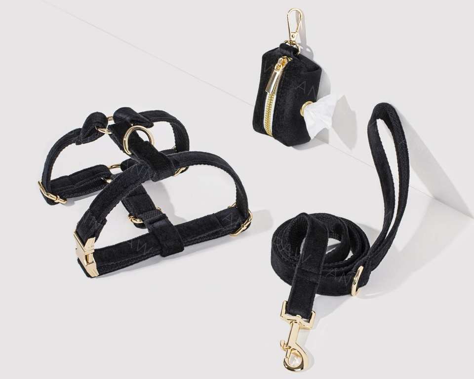 Id personnalisé noir, ensemble de chiot de mariage avec support de sac de caca, laisse de collier de chien personnalisée avec matériel doré