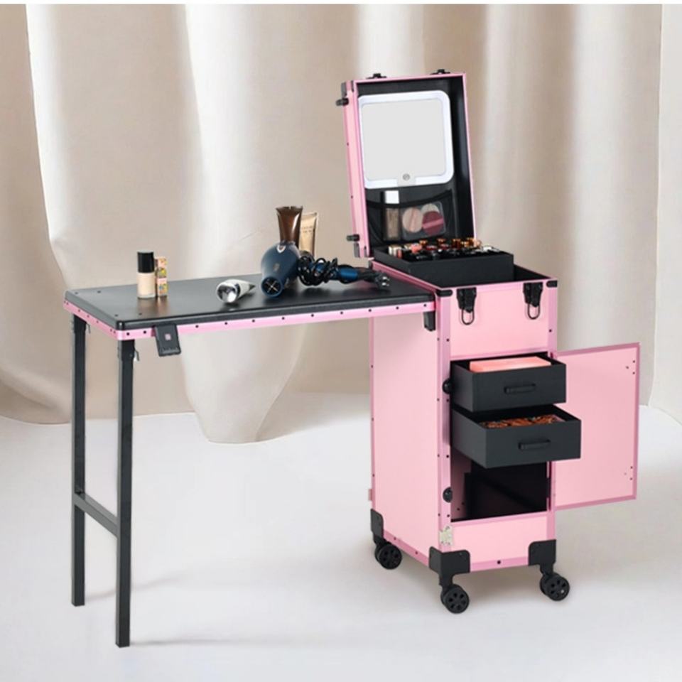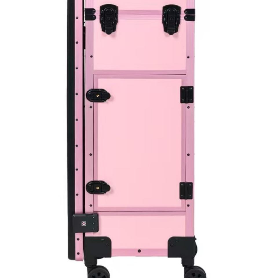 Boîte à maquillage universelle à double rangée de roues noire et rose, ensemble de broderie à motifs de beauté, boîte de rangement pour maquillage, boîte à outils pour ongles
