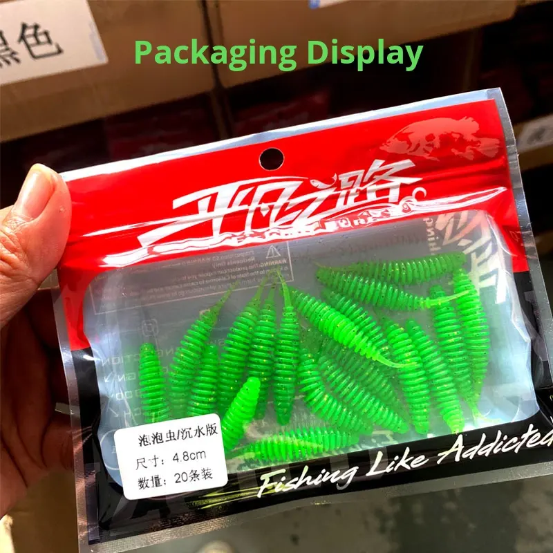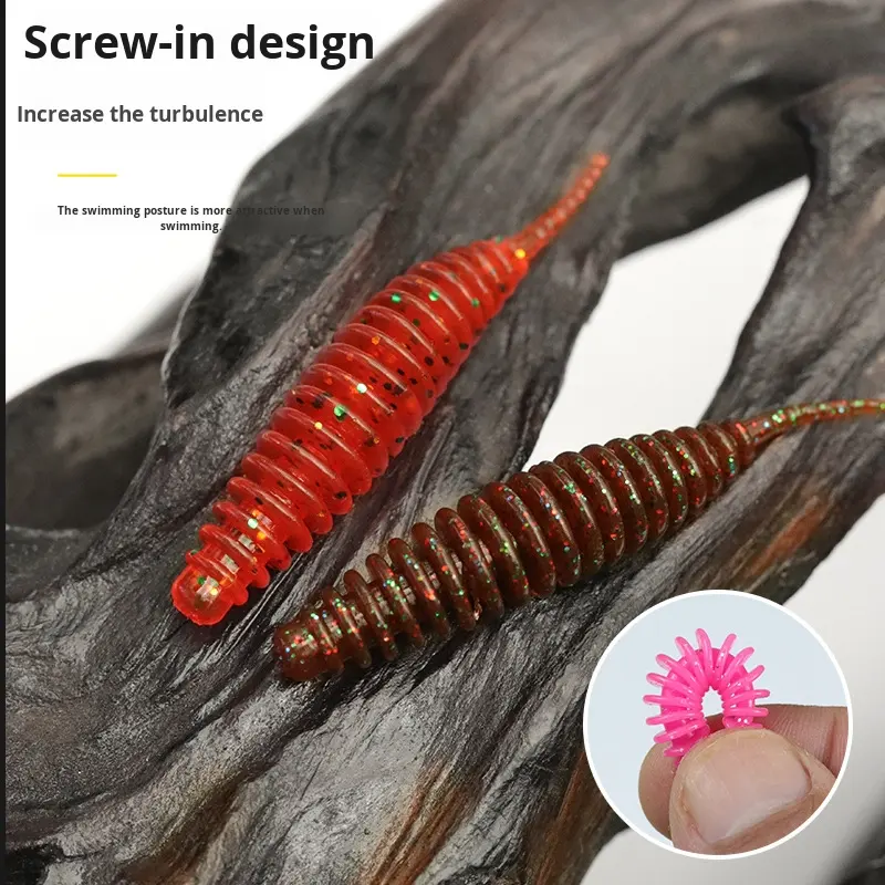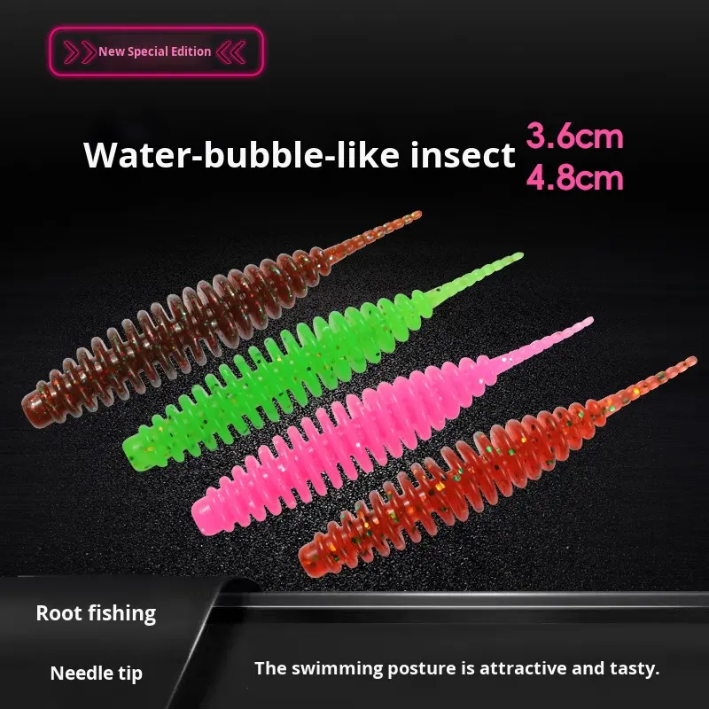 Fond de fosse noir flottant bulle d'eau ver appât souple Micro racine lumière danse spirale queue attrayant leurre de pêche pour bar poisson