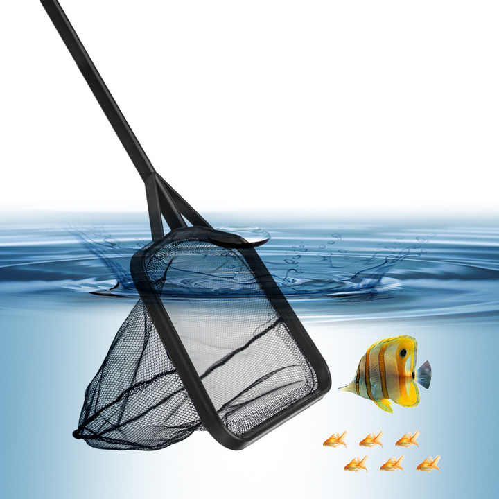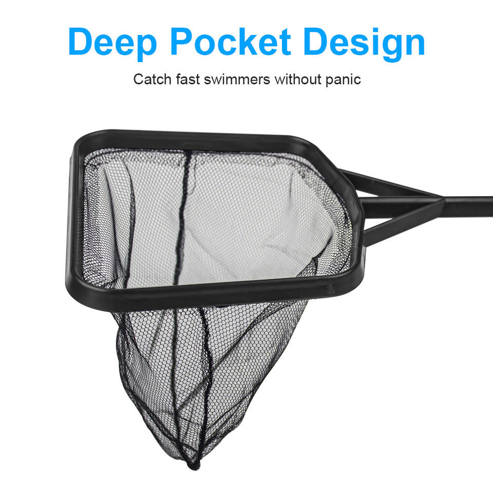 Sac de filet de capture de poisson d'aquarium en plastique noir forme carrée pour poisson rouge et poisson d'ornement filet à main confortable