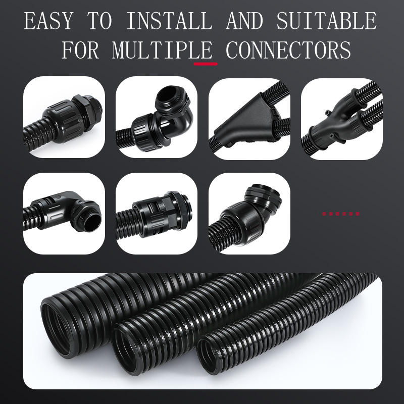 Gaine de câble en plastique noir-raccords de conduits épaissi PP tube ondulé tuyau de filetage tuyau de fil ouvert propice pratique