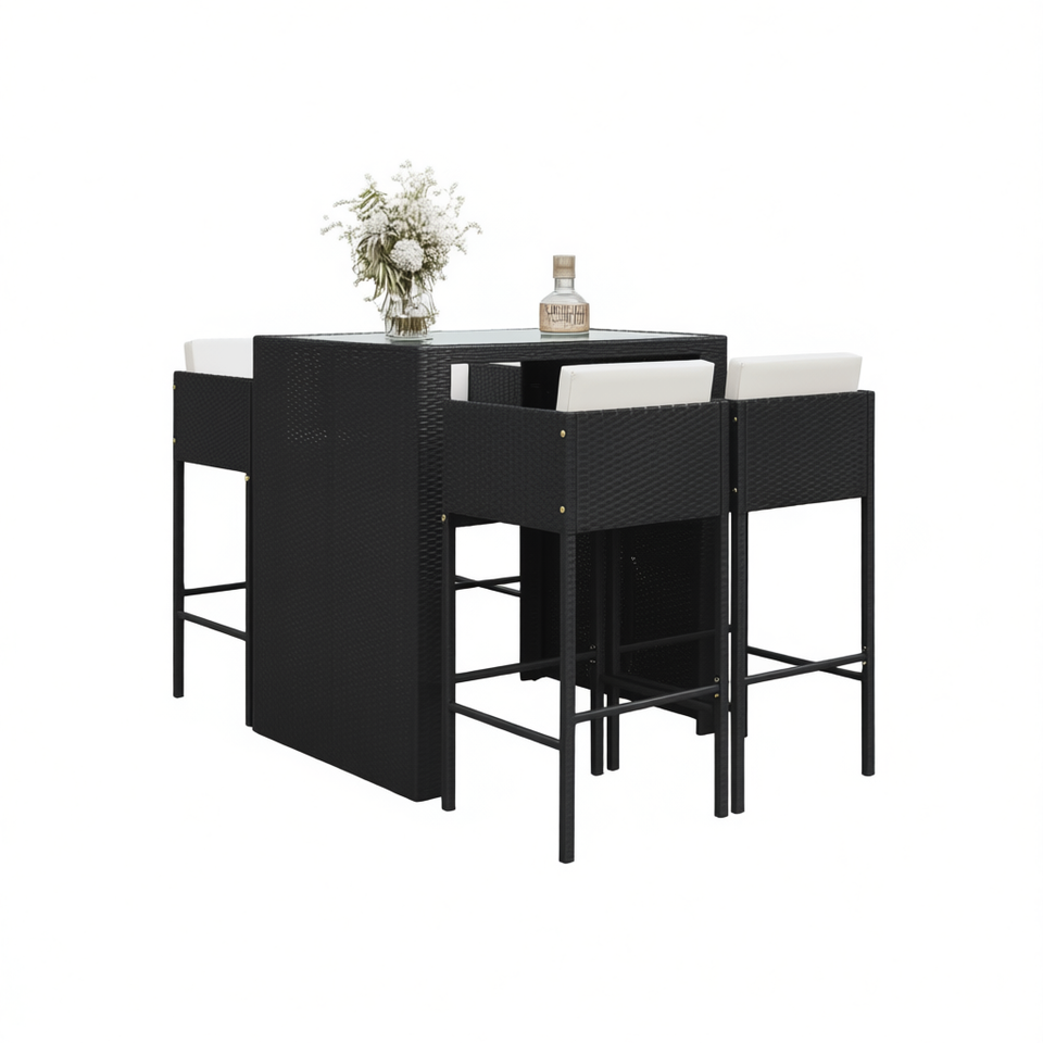 Ensemble de bar de jardin en polyrotin noir avec verre trempé, mobilier d'extérieur 4 places, design contemporain