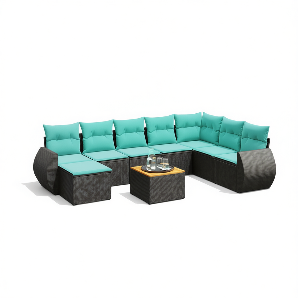 Ensemble de canapés de jardin en polyrotin noir avec coussins, mobilier d'extérieur au design contemporain