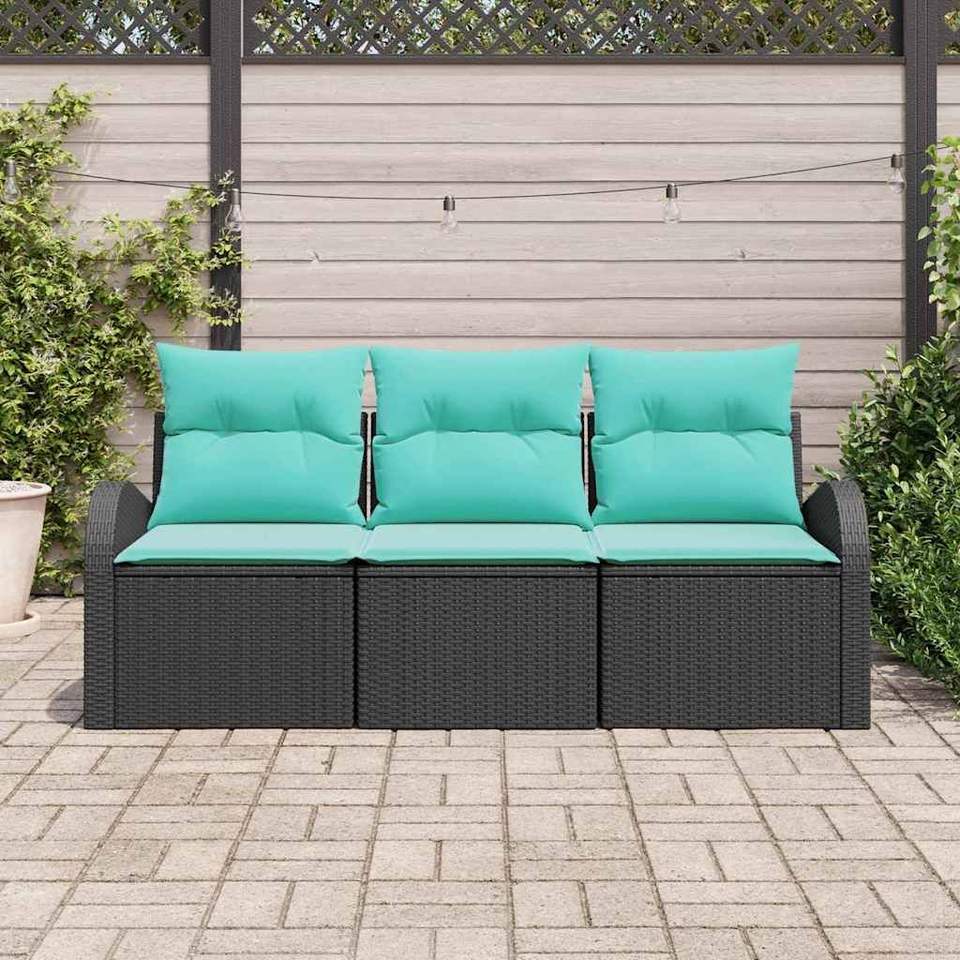 Ensemble de canapé de jardin en polyrotin noir 3 places, mobilier d'extérieur avec coussins imperméables, design contemporain