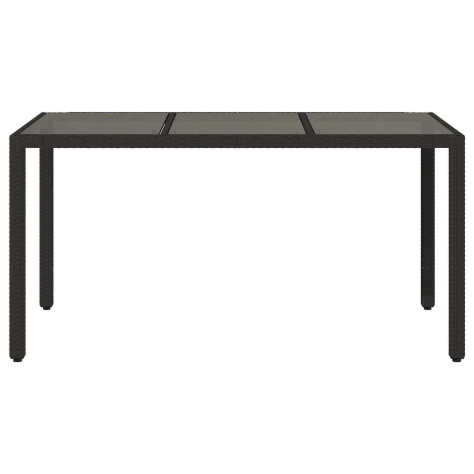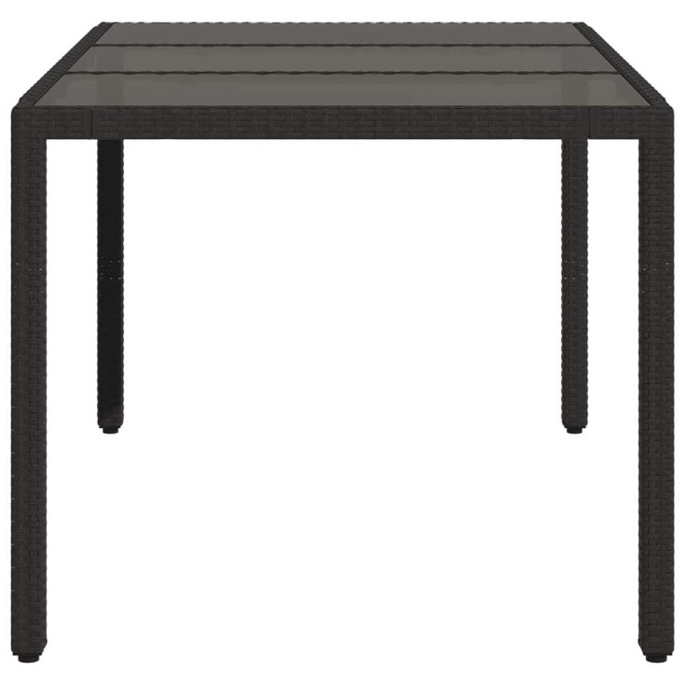 Table de jardin en polyrotin noir avec plateau en verre trempé et structure en acier thermolaqué, mobilier d'extérieur