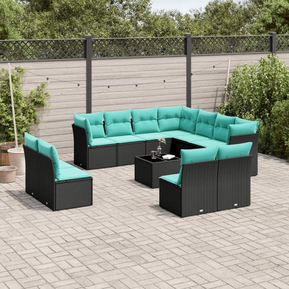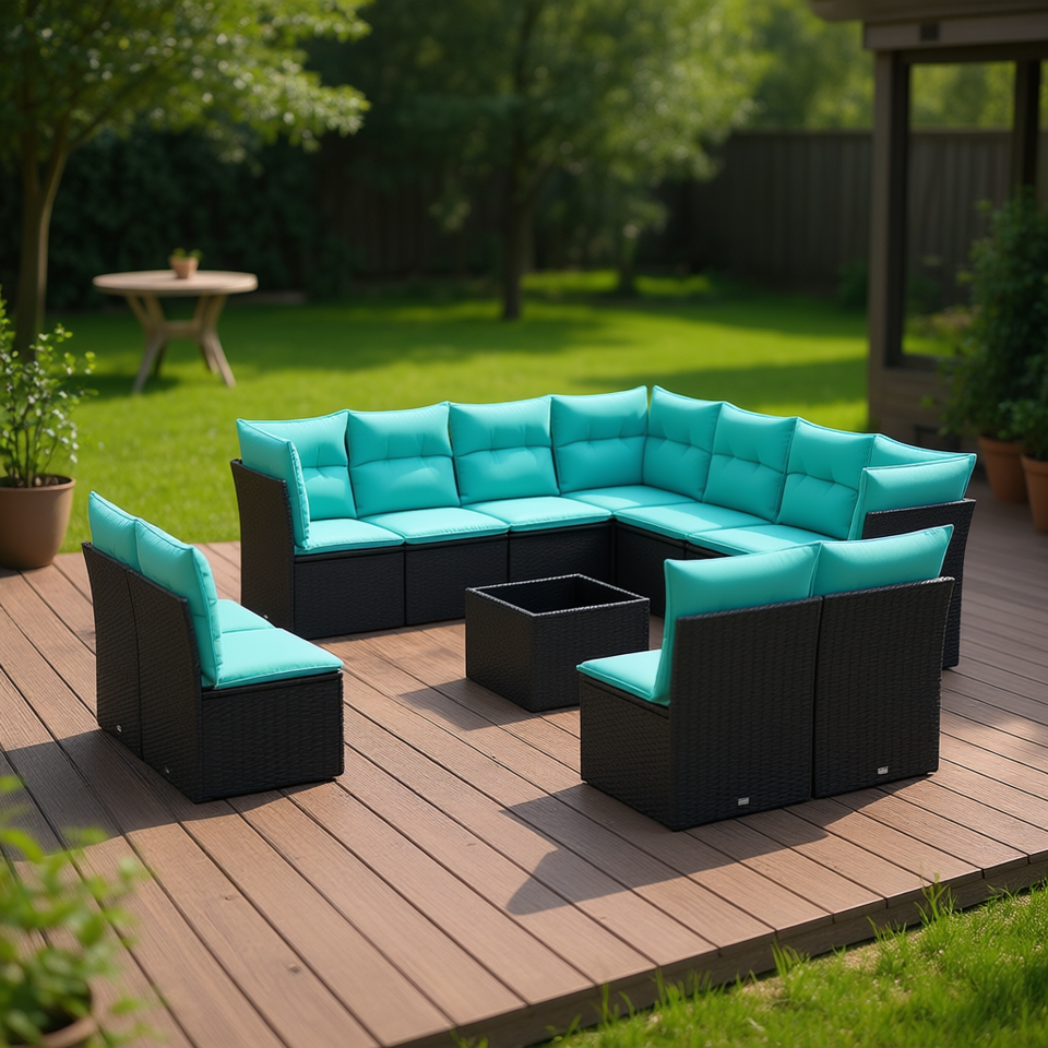 Ensemble de canapés de patio en polyrotin noir, 12 pièces avec coussins, meubles d'extérieur, design contemporain et moderne