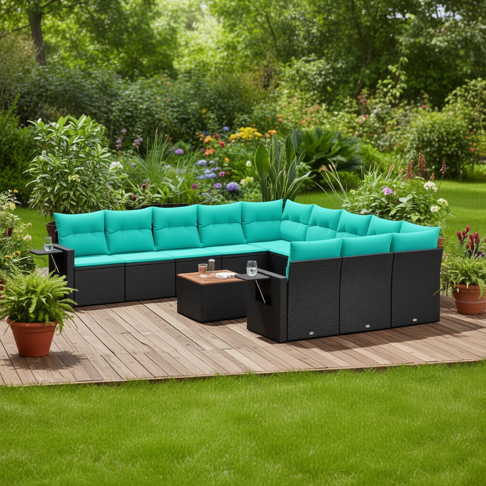 Ensemble de canapés de patio en polyrotin noir avec coussins pour meubles de jardin d'extérieur, design contemporain