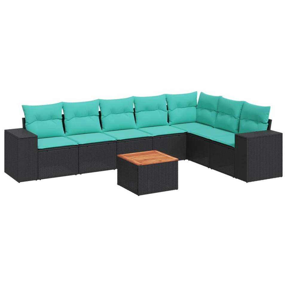 Ensemble de canapés de patio en polyrotin noir, 8 pièces avec coussins, meubles d'extérieur, style moderne et contemporain