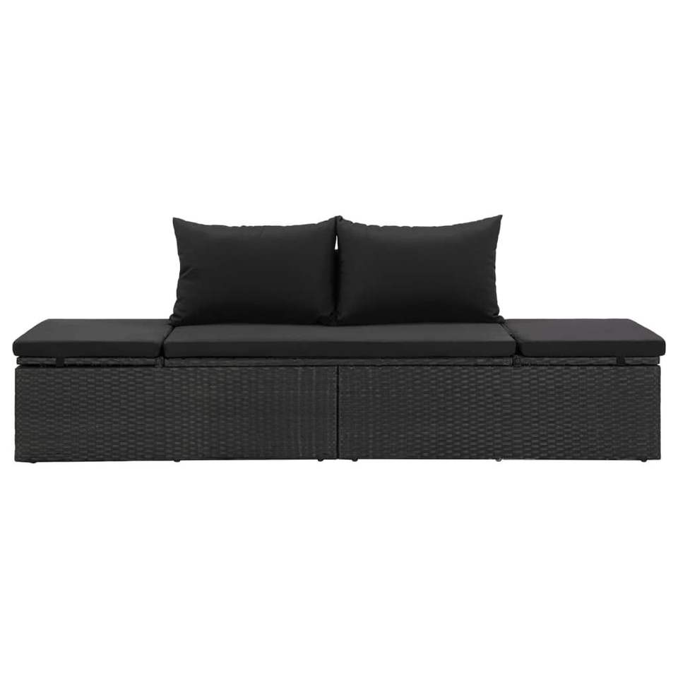 Chaise longue en polyrotin noir avec structure en acier thermolaqué, mobilier d'extérieur durable