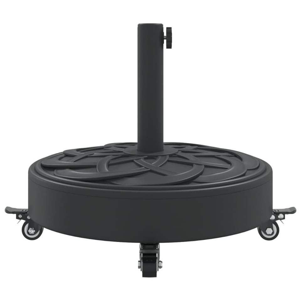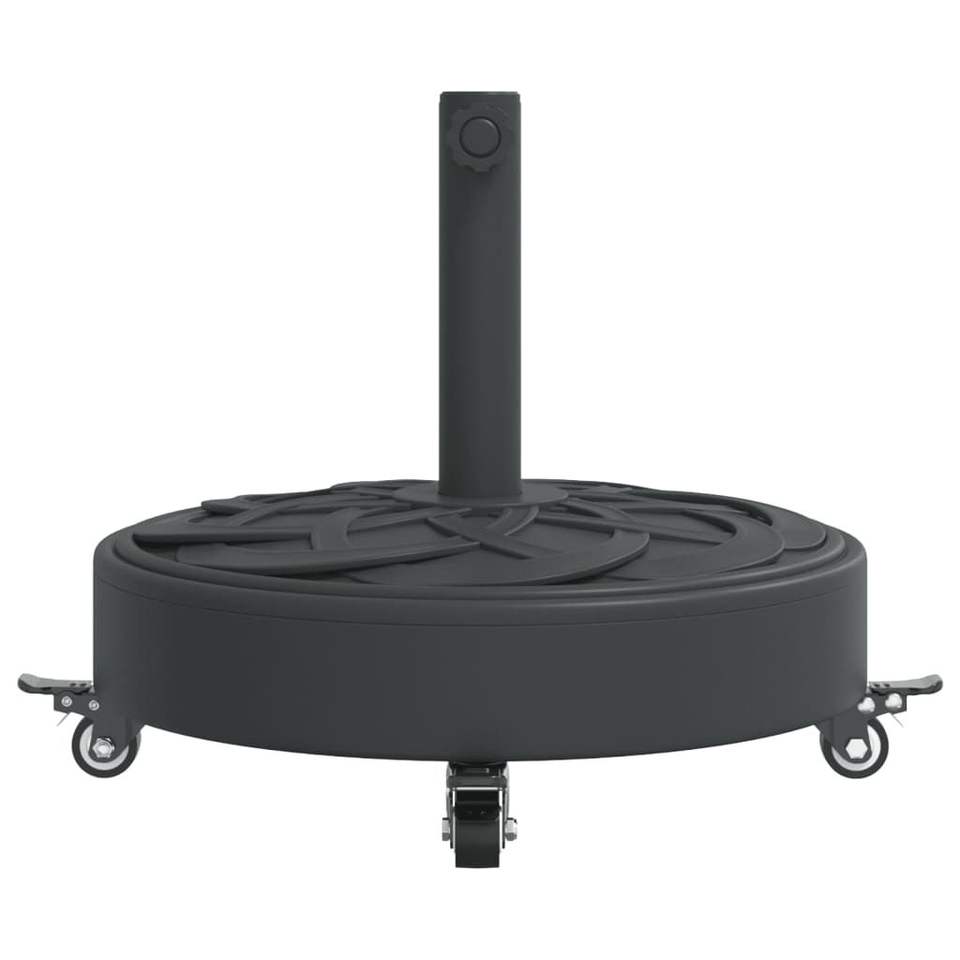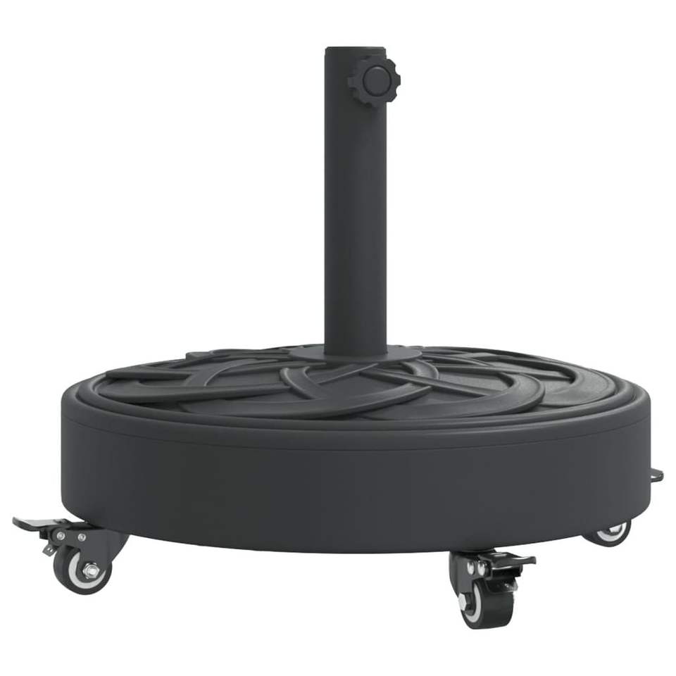Base de parasol ronde en polyéthylène noir avec roulettes pour usage extérieur sur patio