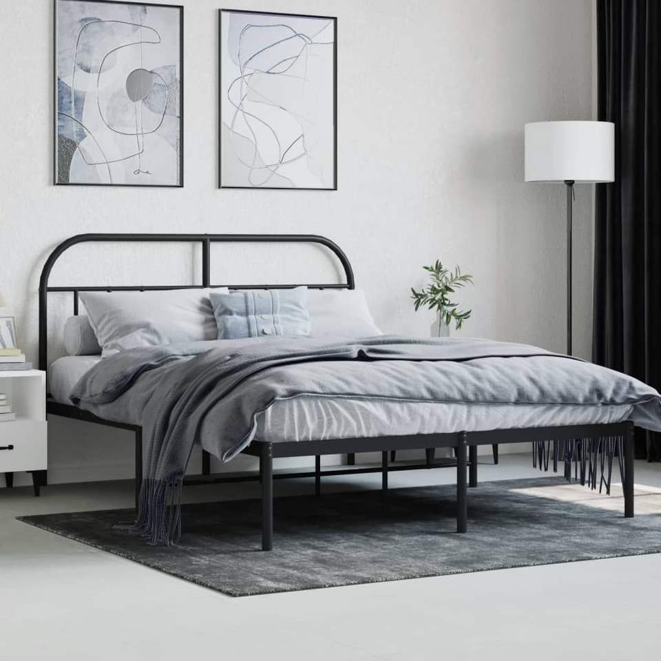 Cadre de lit rectangulaire complet en métal noir avec revêtement en poudre noire