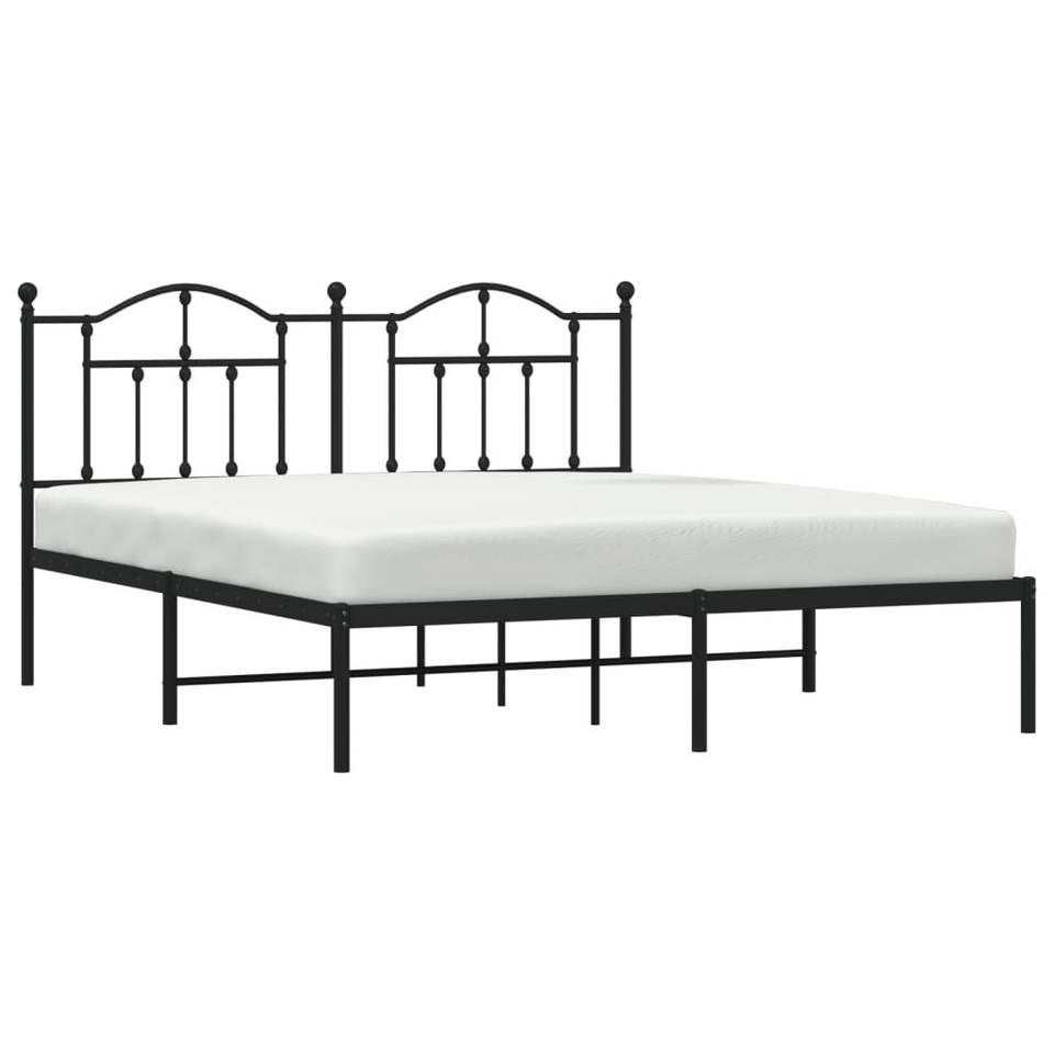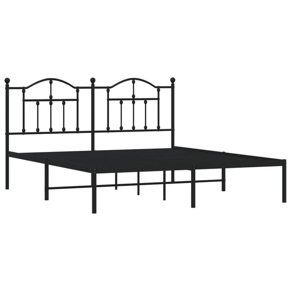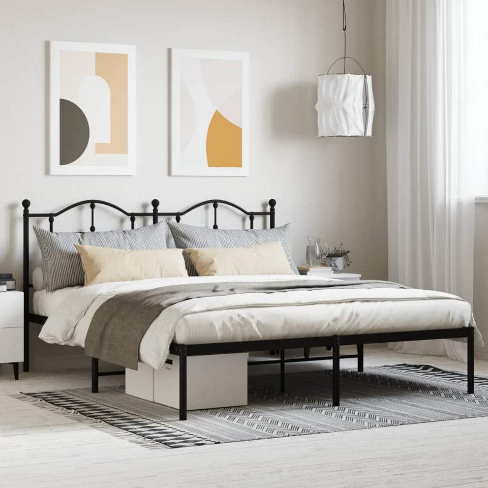 Cadre de lit rectangulaire complet en métal noir avec revêtement en poudre noire