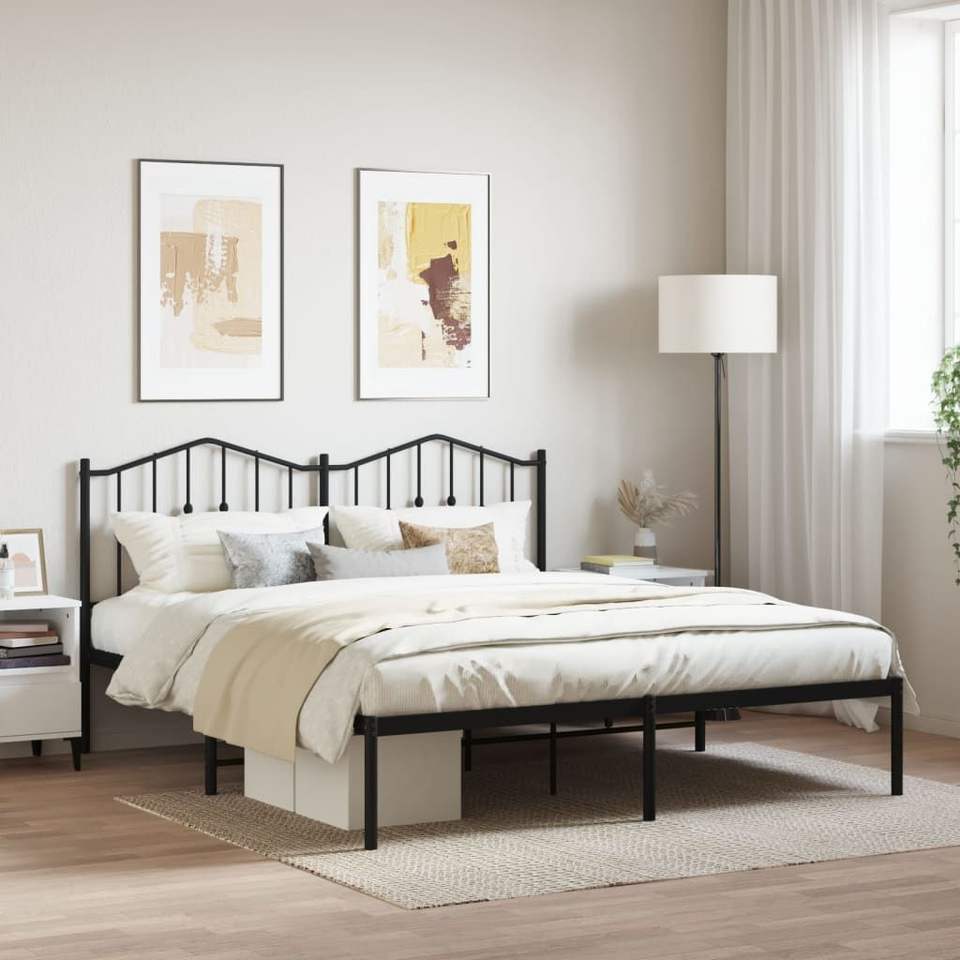 Cadre de lit rectangulaire King en métal noir avec revêtement poudré