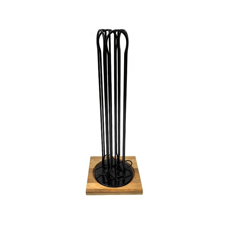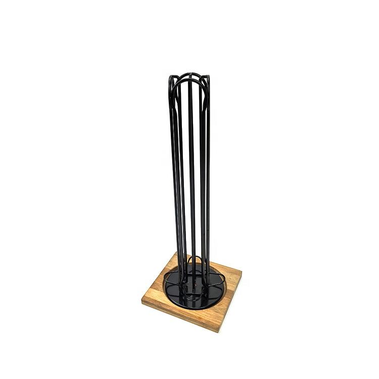 Porte-capsules à café Nespresso en métal avec revêtement en poudre noire et base en bois