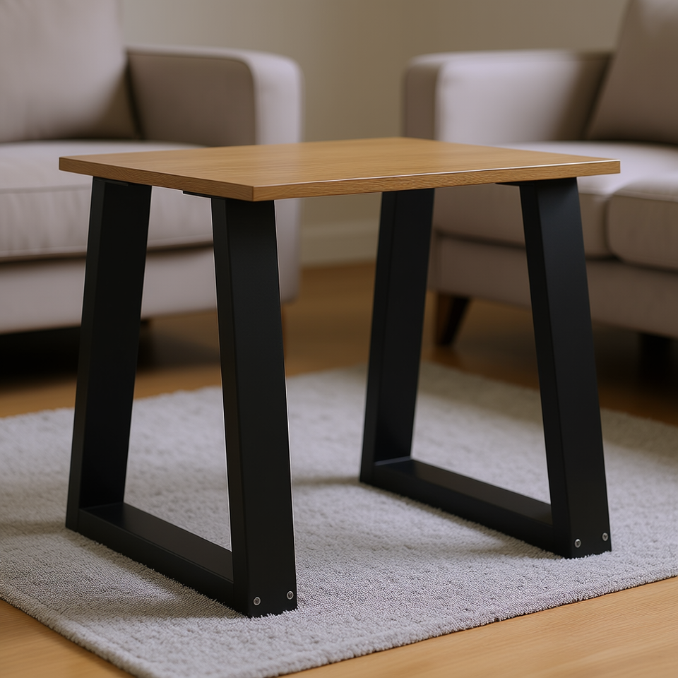 Pieds de table basse en acier noir thermolaqué, design industriel, forme trapézoïdale, accessoires de mobilier
