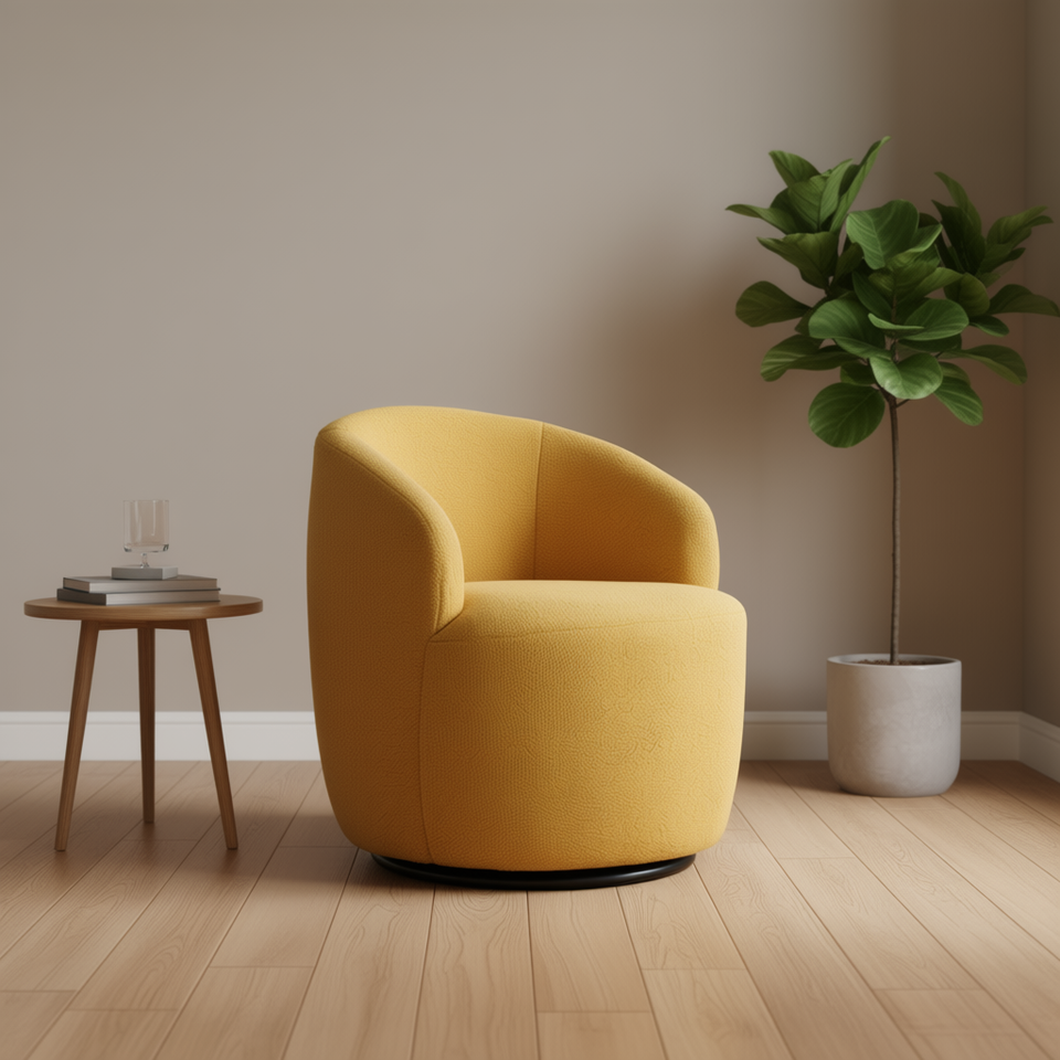 Fauteuil pivotant en tissu jaune pour salon, fauteuil de détente moderne avec base en métal, style contemporain, meubles pour la maison