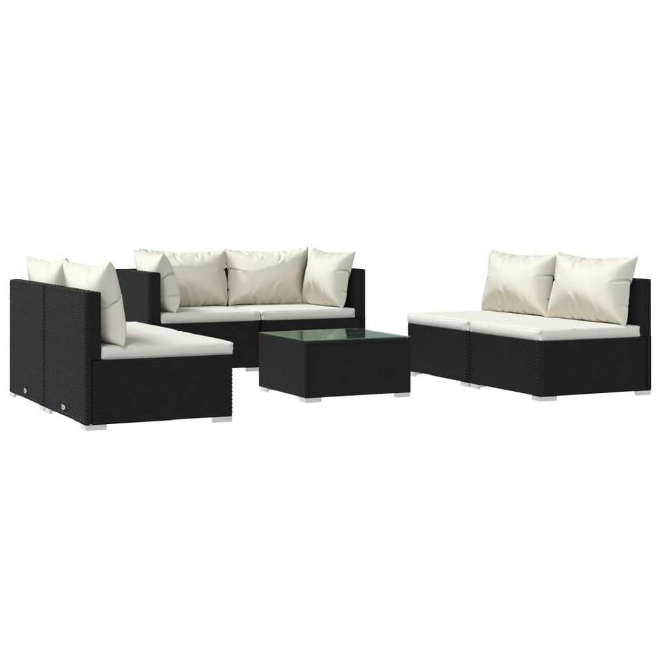 Ensemble de salon de jardin en rotin noir 6 places, résistant aux intempéries, mobilier d'extérieur au design contemporain