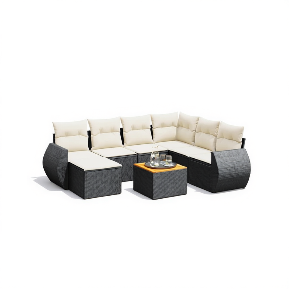 Ensemble de canapés de jardin en rotin noir, mobilier d'extérieur avec coussins en mousse haute densité, design contemporain imperméable